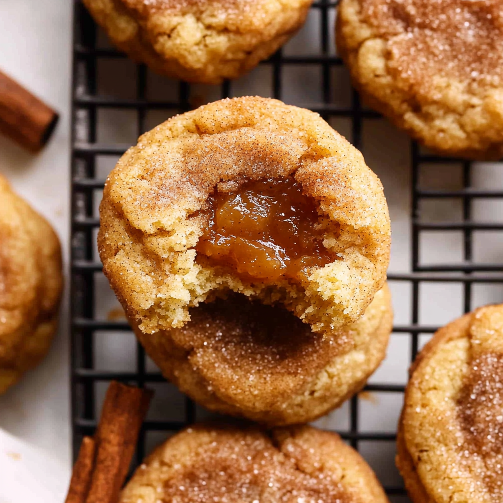 Apple Butter Snickerdoodle Cookies are soft, chewy cookies filled with apple butter and rolled in cinnamon sugar, perfect for fall baking.