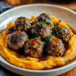 beef Meatballs with Sweet Potato Mash & Bourbon-Maple Sauce is a delightful dish that’s perfect for any occasion. This recipe features tender beef meatballs paired with creamy sweet potato mash and a rich, flavorful sauce. It’s not only easy to prepare but also delivers a comforting meal that everyone will love.