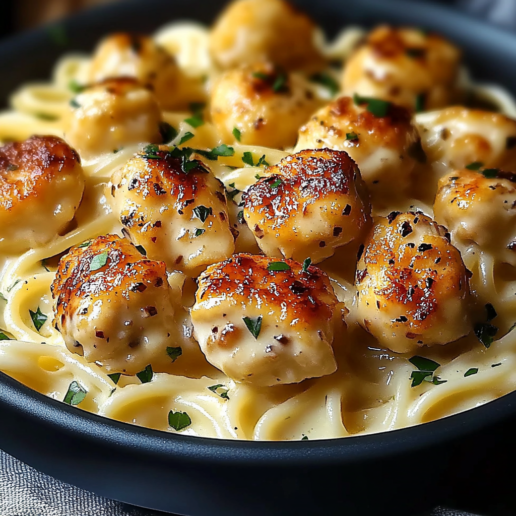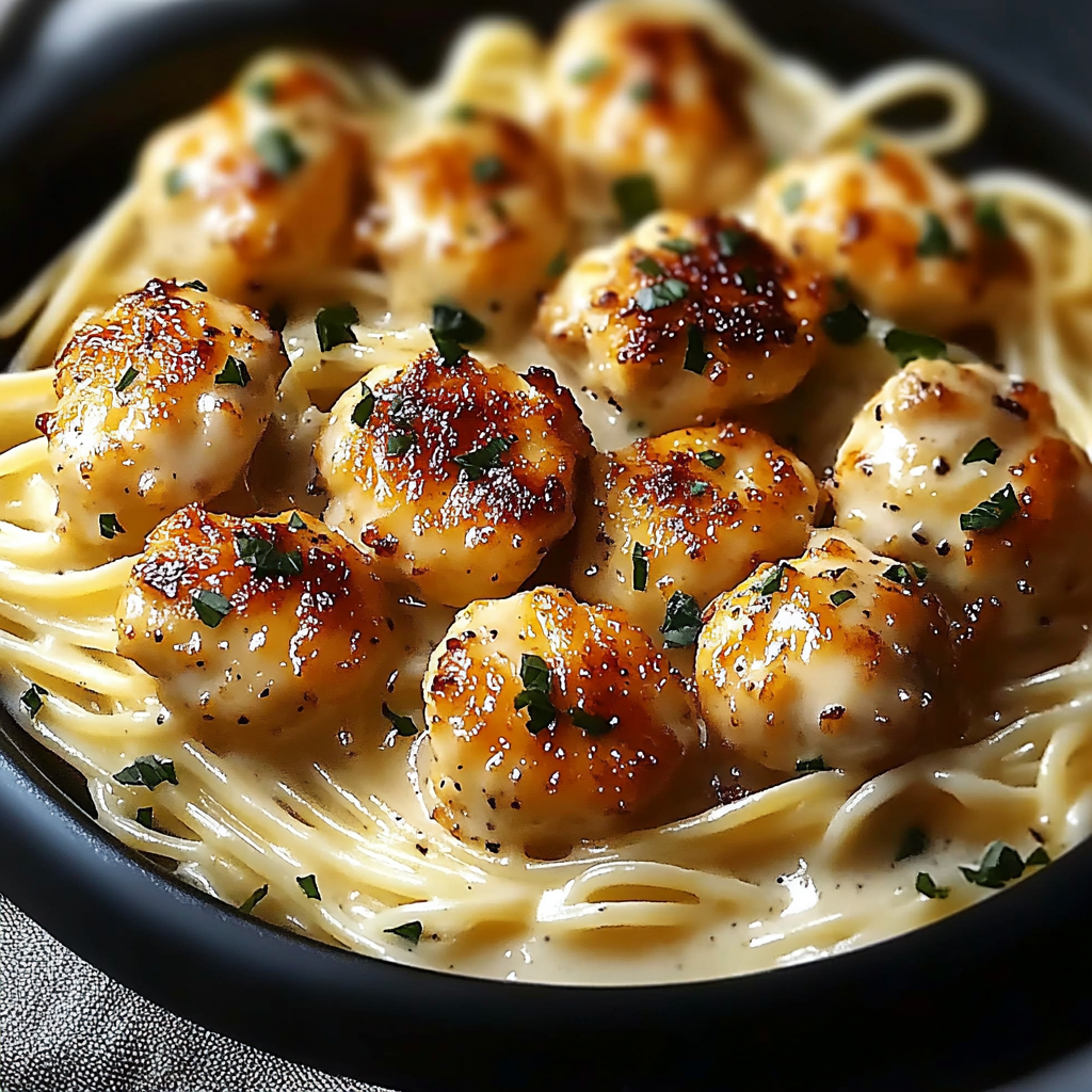 Garlic Butter Chicken Bites with Creamy Parmesan Pasta