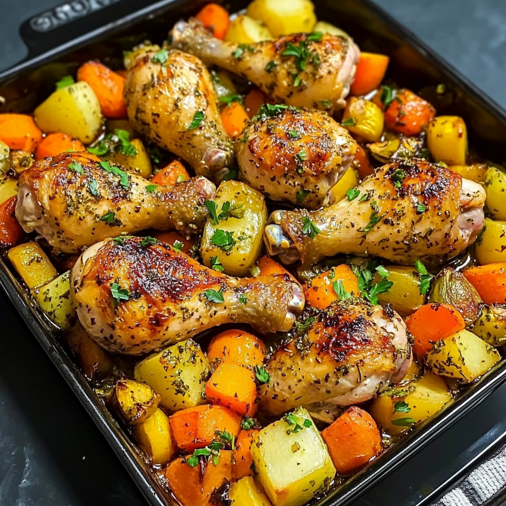 Enjoy flavorful Garlic Herb Chicken Drumsticks with Veggies! A hearty meal that’s easy to prepare. Try this delicious recipe today!