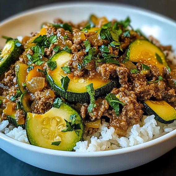 Indulge in the delightful flavors of a Greek-Style Beef and Zucchini Rice Bowl, a quick and satisfying dish that brings the essence of Mediterranean cuisine to your table. This vibrant bowl features seasoned ground beef complemented by tender zucchini and aromatic spices, all served over fluffy rice. Ready in just 30 minutes, it’s perfect for busy weeknights or casual get-togethers with family and friends. The addition of fresh parsley enhances its appeal, while optional crumbled feta cheese provides a creamy touch. Enjoy this nutritious meal that is both flavorful and visually enticing!