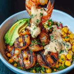 Ready to elevate your dinner routine with something bold, fresh, and fast? This Grilled Shrimp Bowl with Avocado, Corn Salsa & Creamy Sauce is a flavor-packed meal that brings together smoky grilled shrimp, creamy avocado mash, sweet and crunchy corn salsa, and a spicy-lime dressing you’ll want to drizzle on everything. It’s the perfect blend of healthy and indulgent—ideal for quick weeknight dinners, meal-prep lunches, or vibrant dinner ideas that feel like a mini fiesta in a bowl. If you’re hunting for easy recipes, healthy food ideas, or quick meals packed with protein, this one’s a guaranteed win.