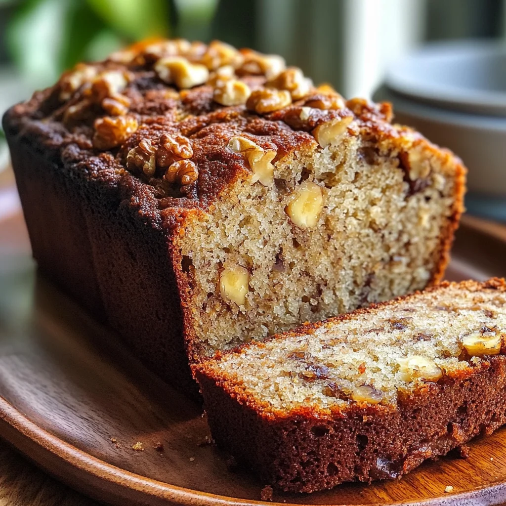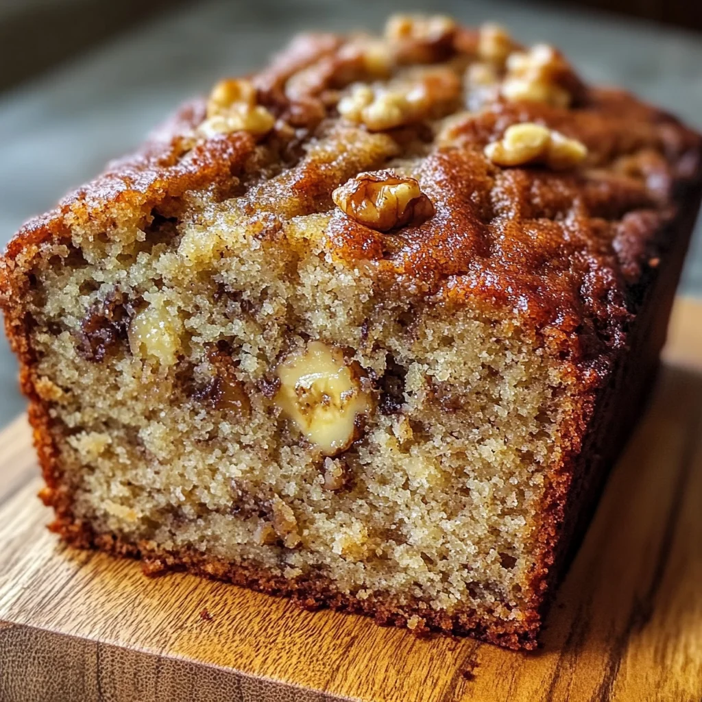 Golden banana bread with ripe bananas, buttery flavor, and a hint of spice—delicious warm or cool.